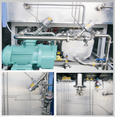 The piping system: Adopt with the reliable Germany Burkert or GEMU pneumatic angle type valve, water ring vacuum pump and 1.22um high efficiency sterile medical grade filters, the pipe clamp adopts the quick connectors, the piping and the related spares are all according to the sanitation standard.